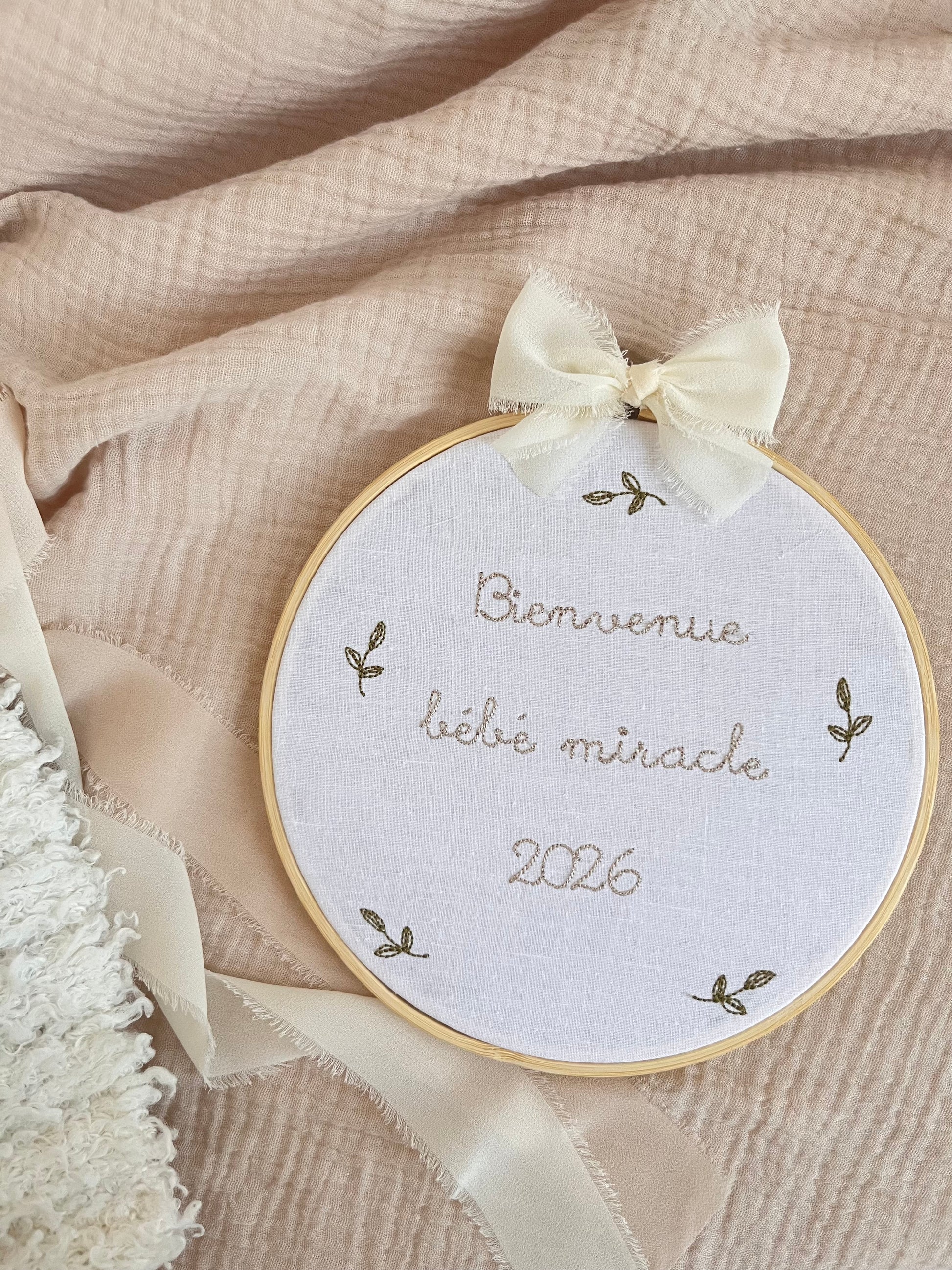 🪡 Tambourin brodé et personnalisé, idéal pour décorer la chambre de bébé ou pour offrir