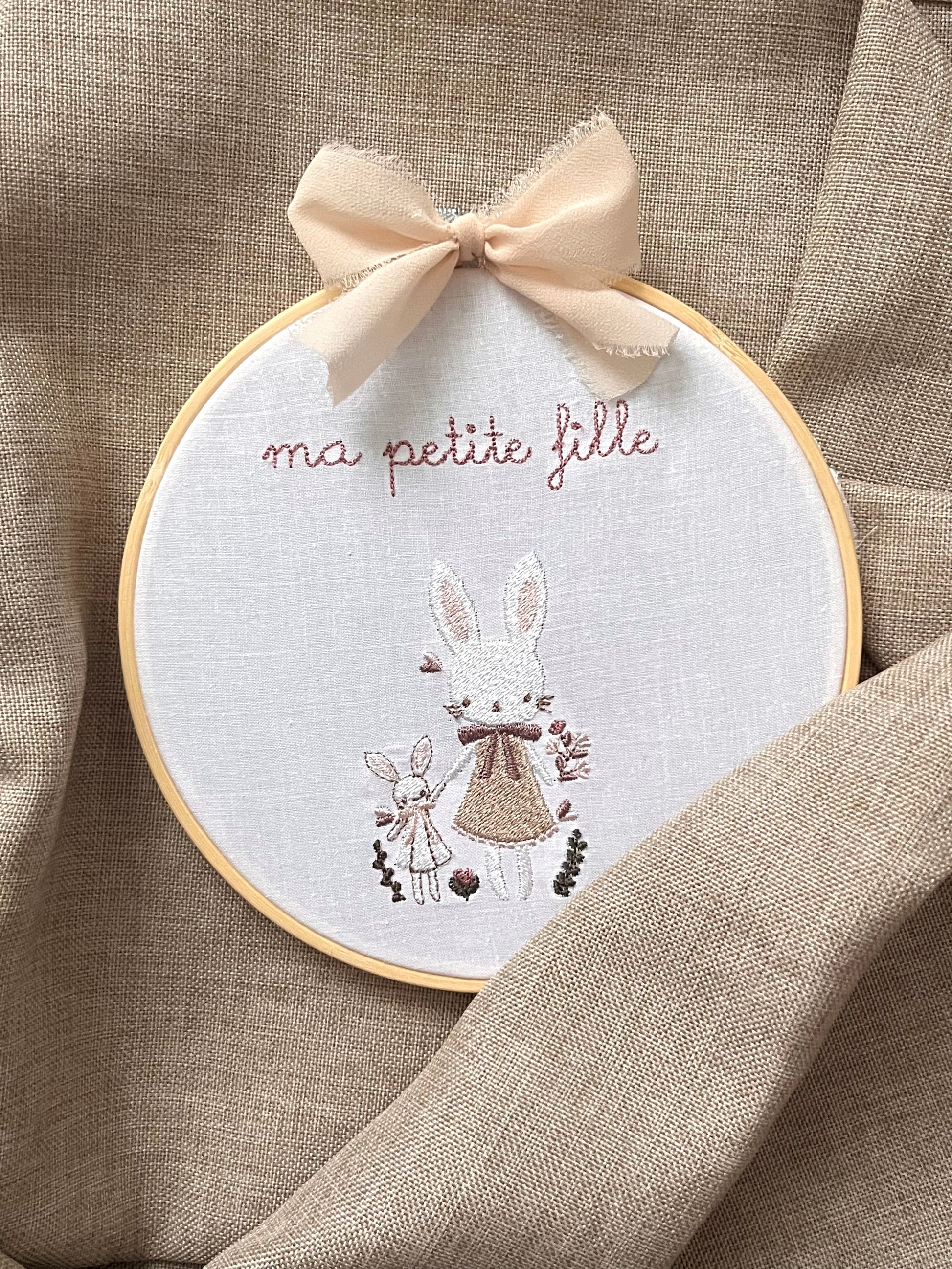 Tambourin brodé lapins
